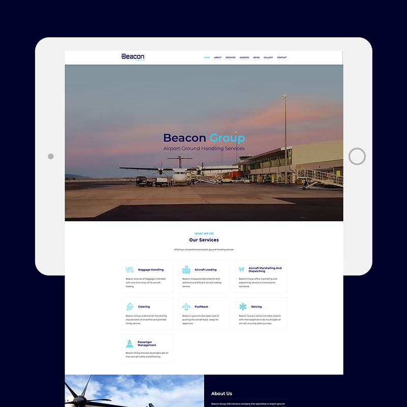 Beacon Group asked us to produce a new logo brand assets and a new website that would give them a more professional image to stand out from their competitors. Their new logo and business cards are simple yet vibrant, incorporating aviation imagery as a visual reference to their industry.